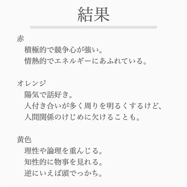 カラー心理テスト 結果 フォレスト サンスト リラクゼーションサロンフォレスト サンストリートのおきらくブログ